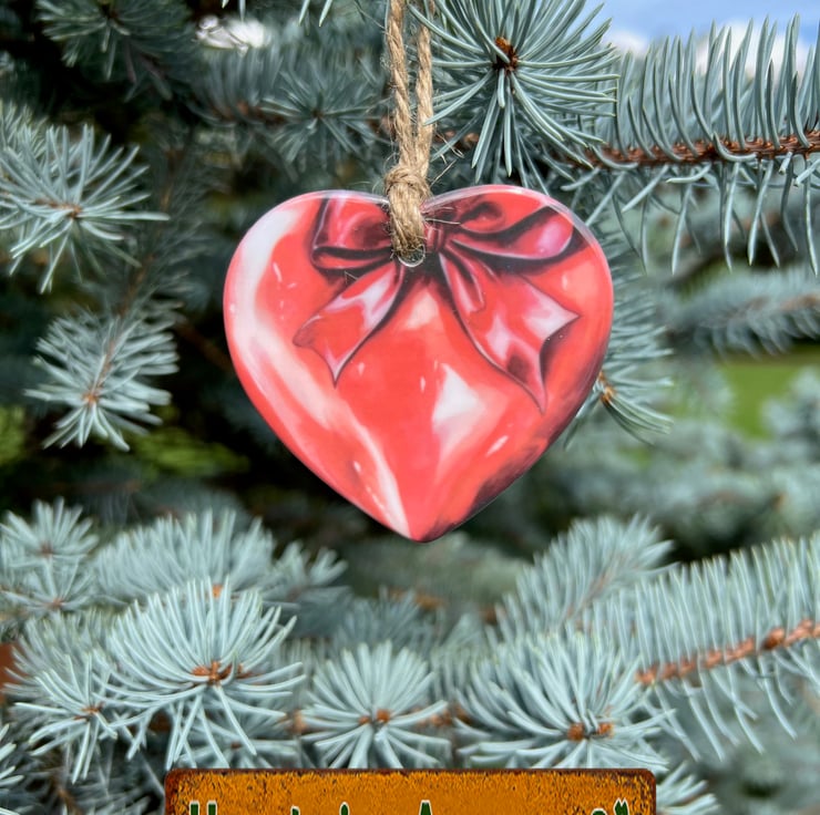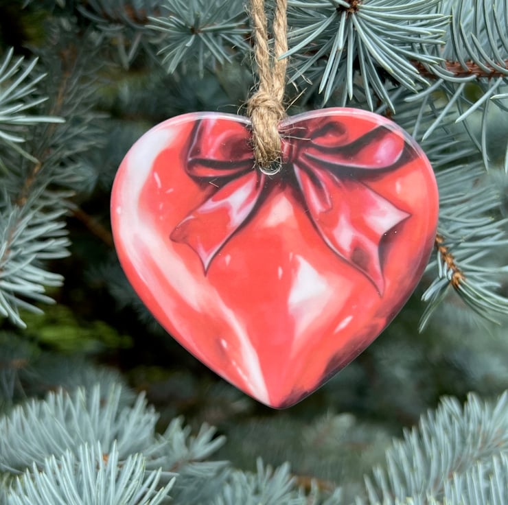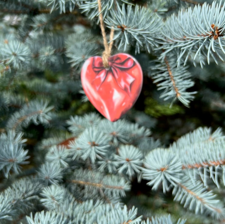 Bring a smile to your Christmas tree with this handmade ceramic heart ornament, featuring a beautiful deep red heart — a festive favourite for all ages