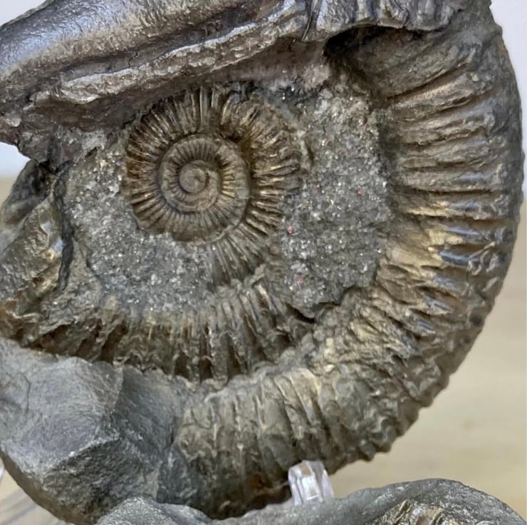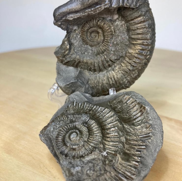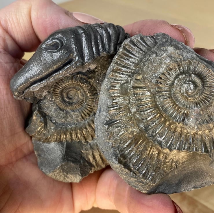 Dactylioceras (Dac) Fossil. Beautifully split in 2 pieces with a perfectly split detailed centre, measuring 7cm including matrix x 5cm.