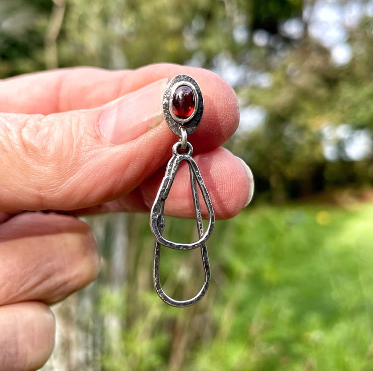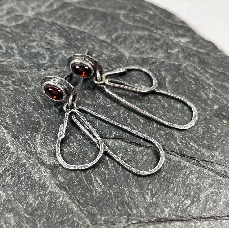 The earrings hang 4cm long. The garnets measure 6 x 4mm