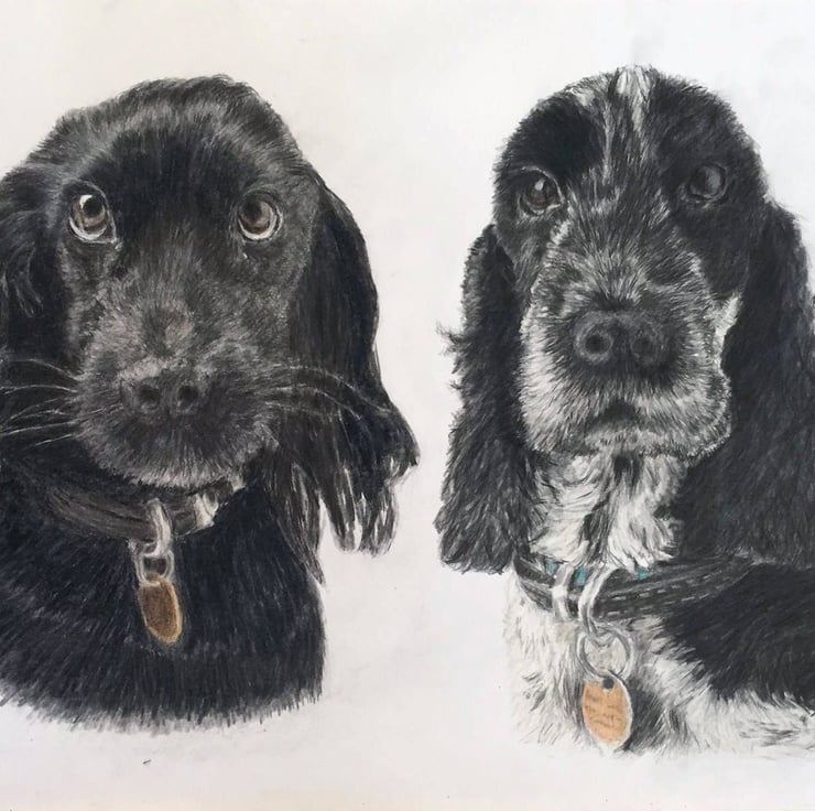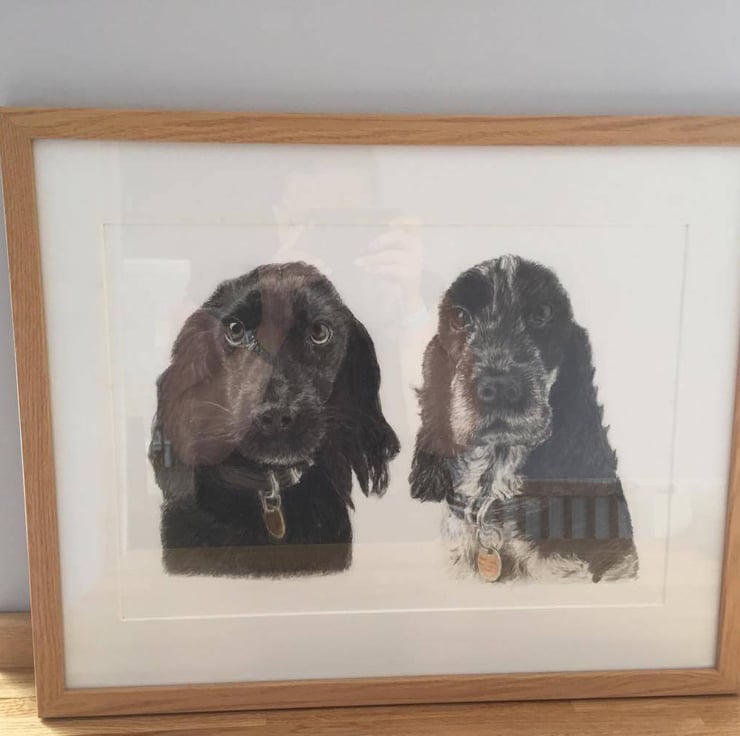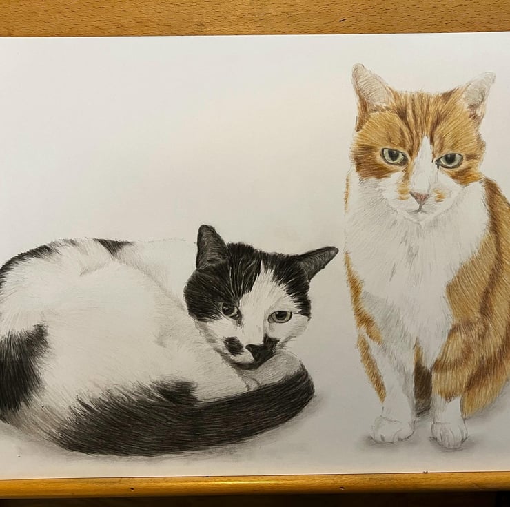 Each drawing is carefully packed and posted flat to keep it safe. This listing is for a pair of pets, drawn at A3 size. If you’re after a portrait with more than pets, a different size, or something more personalised, please feel free to get in touch.