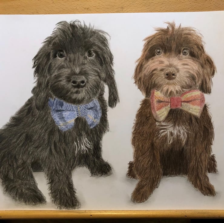 A custom portrait of your pets is a lovely way to celebrate them – whether it’s a thoughtful gift or something just for you. Each piece is drawn by hand using artist-quality coloured pencils, with care and attention to detail. I always aim to capture not just how your pets looks, but their personality too.