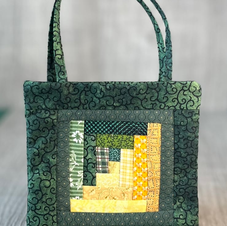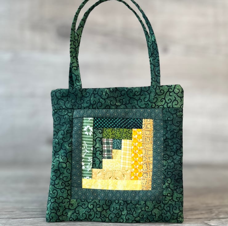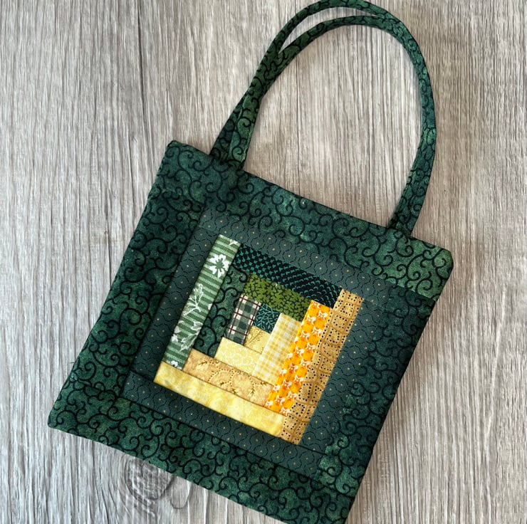Green and Yellow Patchwork Log Cabin Mini Tote Bag