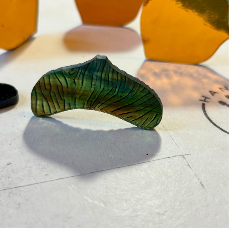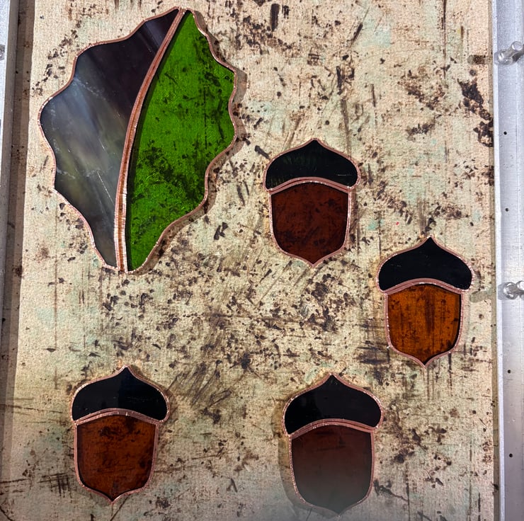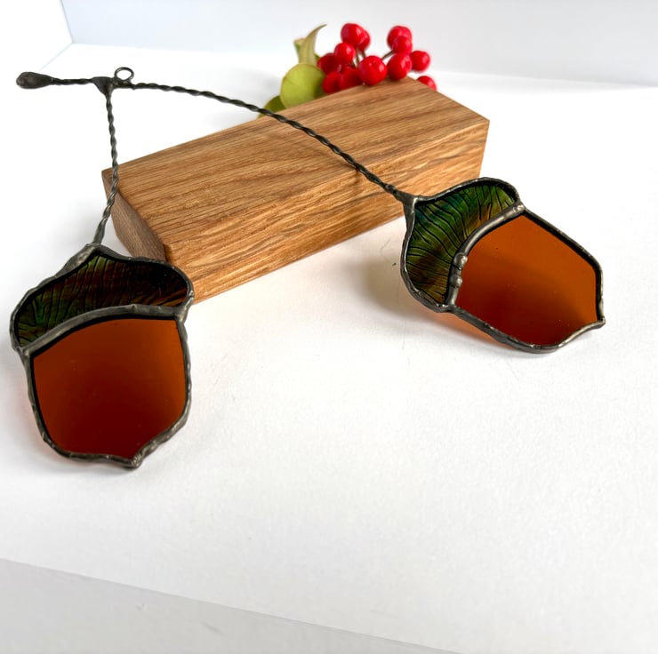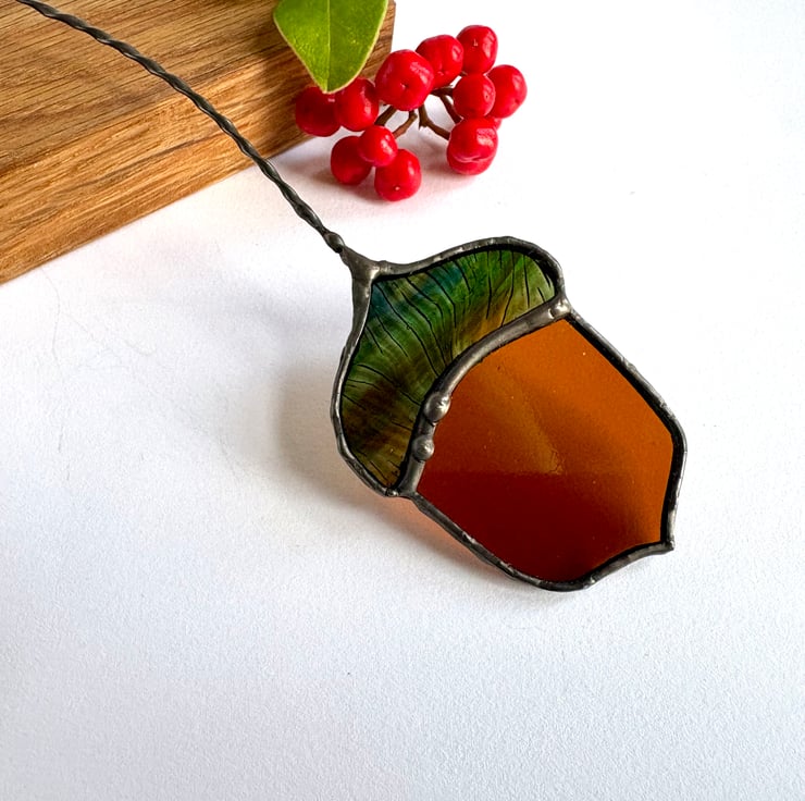 The branch has been made in my studio in Dunblane using traditional Tiffany technique with lots of care and attention to details. The stained glass used in this design has been carefully chosen to resemble colours and textures of an acorn.