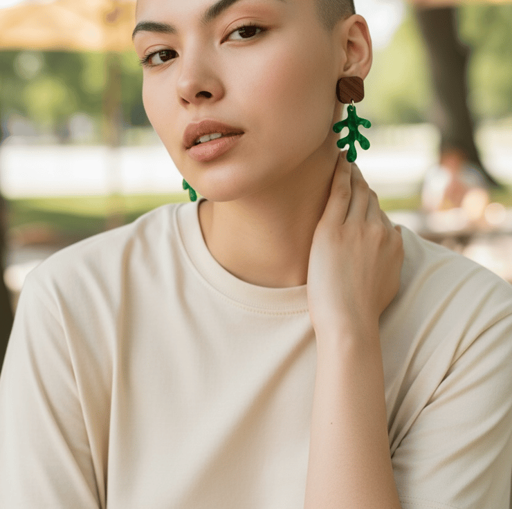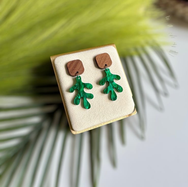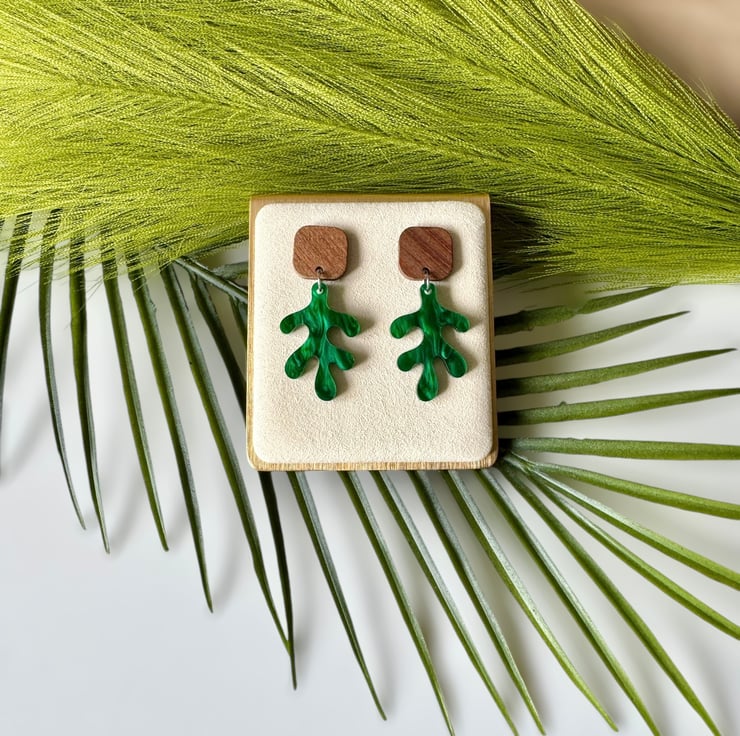 Accompanied by a Matisse inspired Freeform flowing shape in gorgeous forest green pearlised marble acrylic.