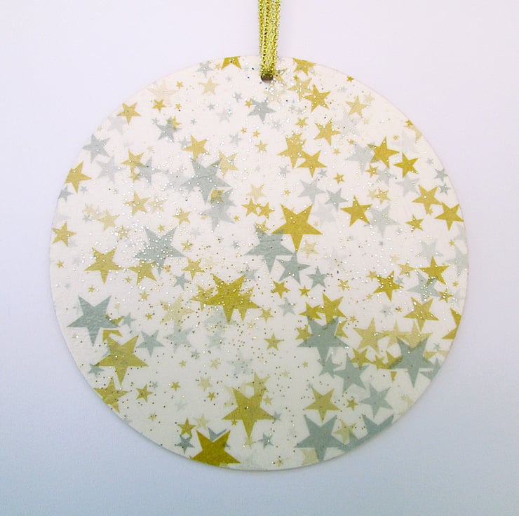 A lovely 10cm decoupage flat wood Christmas bauble is just perfect to add to your festive indoor decor this season. With a matching ribbon for hanging, it's ready to hang or to gift. The reverse of the bauble is the natural wood. There maybe an odd crinkle on your ornament, but that is completely normal for anything made with decoupage.