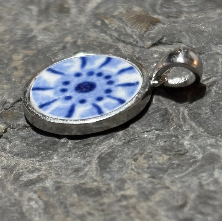 The idea is to create something new from old, the finished piece isn't meant to be perfect. Instead, retain marks, stains and scratches, part of the original character of the ceramic. All Sterling Silver is either recycled or repurposed and may also have imperfections or scratches.