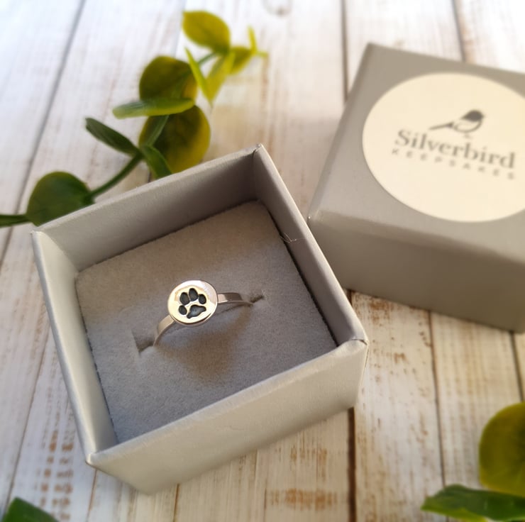 Looking for that perfect keepsake to help you feel closer to your beloved pet? Whether your furry best friend is still with you or has passed on, this stunning dog paw print ring, handmade in pure silver and featuring the true texture of your pet's unique paw shape, means you can always keep their paw prints close to your heart. INKLESS PAW PRINT KIT POSTED NEXT WORKING DAY