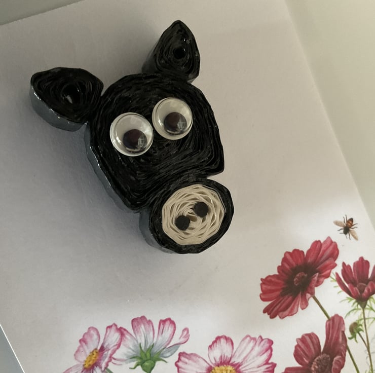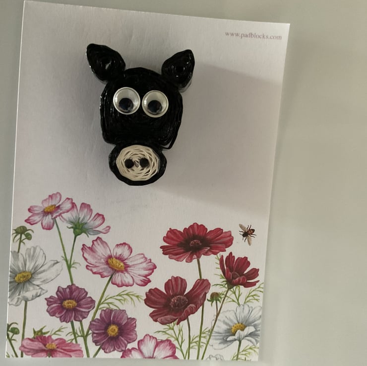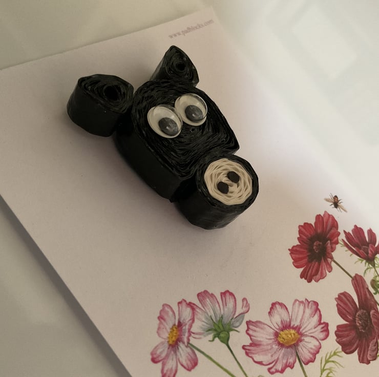 This Quilled Donkey Fridge Magnet is made mainly in Black with a touch of White 10mm width paper strips. They have been rolled, shaped and glued together. Googly eyes have also been added. It has a gloss finish to it. It measures H5.00cm x W3.5cm x D1.5cm. It will posted by Royal Mail 2nd Class Large Letter in a padded envelope.
