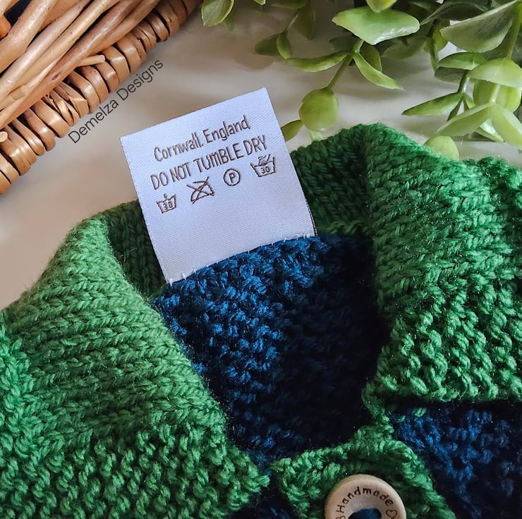 The buttons are made from genuine wood. On the cardigan back neck the branded luxurious damask Demelza Designs garment label has the care instructions woven within it on the reverse side for lasting reference. Prior to dispatch a branded Demelza Designs garment swing tag will be attached to the front providing a professional touch, especially if gifting.