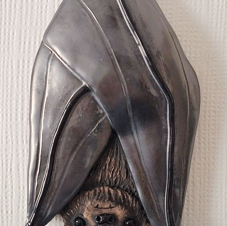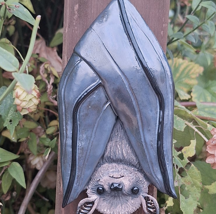 My Hanging Bats are hand-made ceramic wall mounted decorations, lovingly glazed realistically in a matt finish, with shiny eyes, nose and with beautiful sheeny pewter wings. They are made by me completely from scratch so no two will ever be the same.