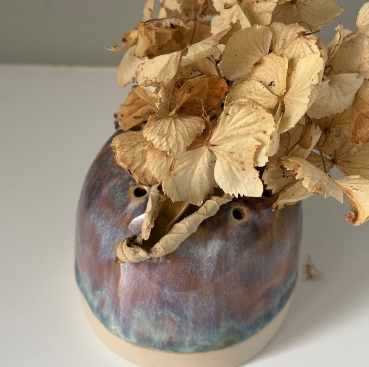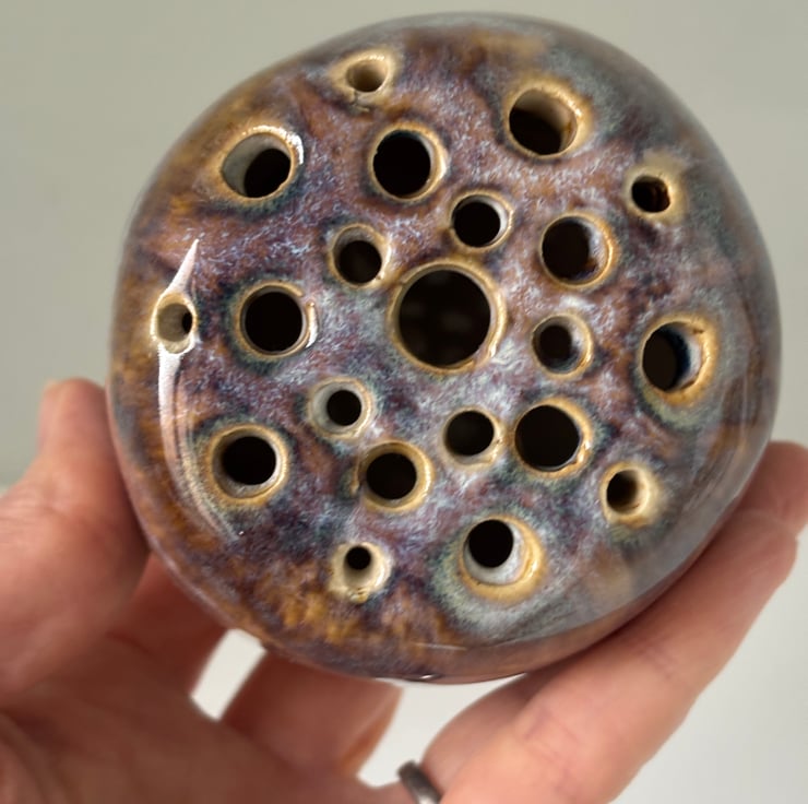 Beautiful ikebana vase. This handmade ceramic flower frog is carefully crafted using pinching and slab-building techniques, making every piece truly one of a kind. Once shaped, holes are individually created in the top, allowing for easy floral arranging.