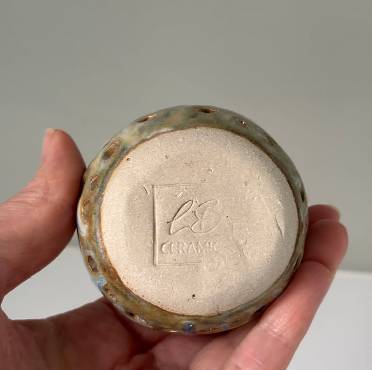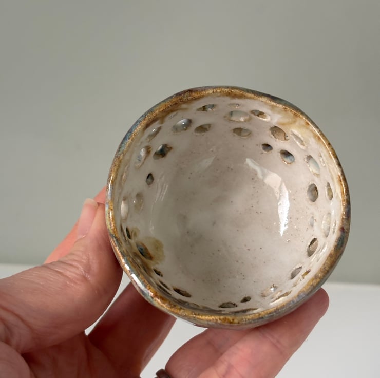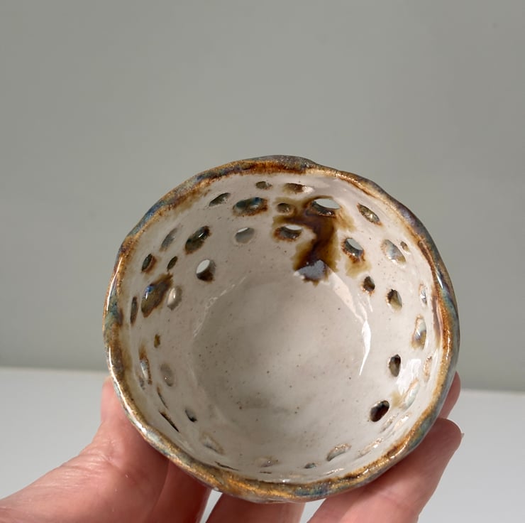Please note that all products show the individuality and handmade nature of the product, which adds to the overall charm. Sometimes a couple of holes become covered with glaze, however this does not affect the overall look.