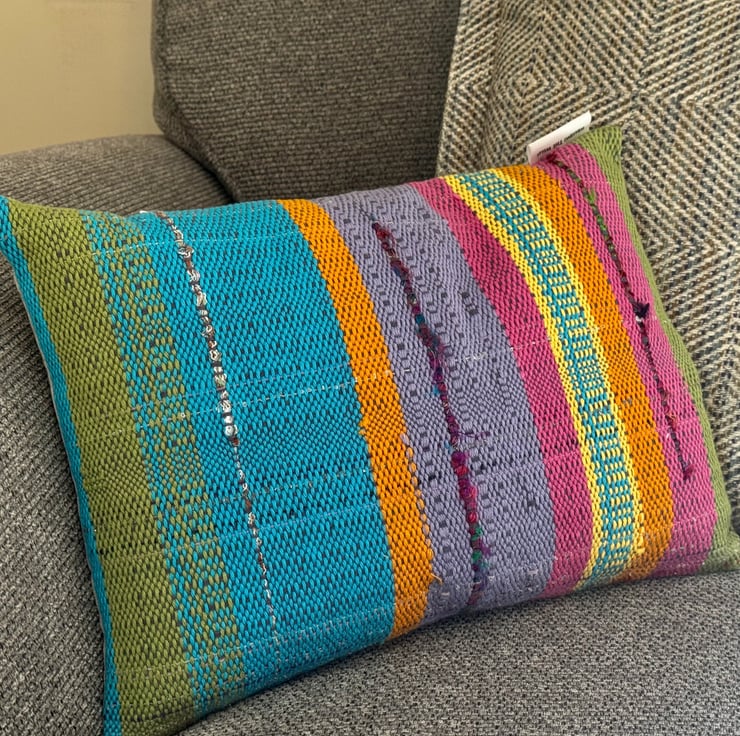 The cushions are made from "end of warp" textiles that would otherwise be discarded.