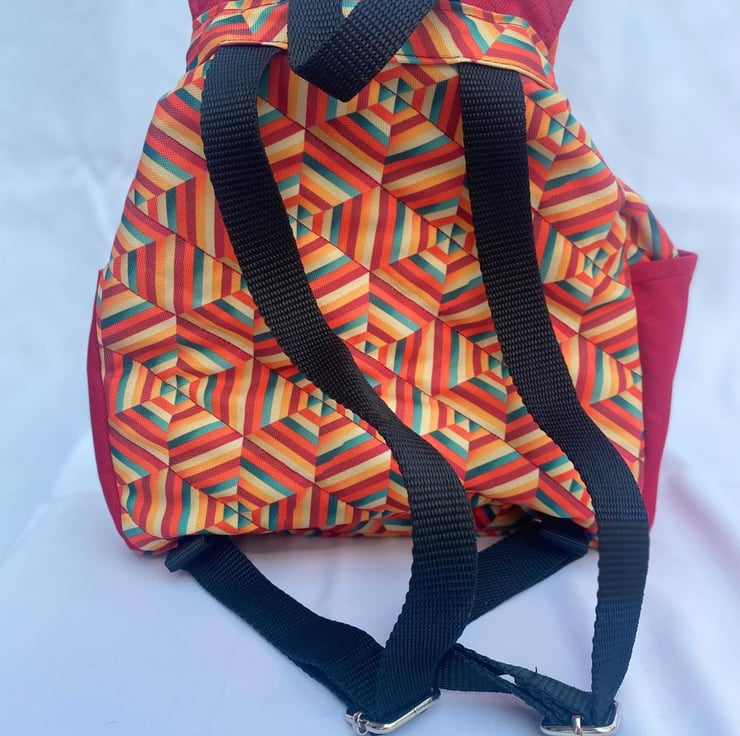 Bright and jazzy, geometric pattern back pack for all your daily needs!
