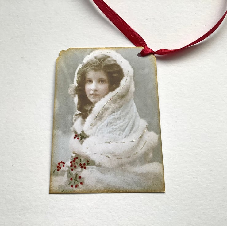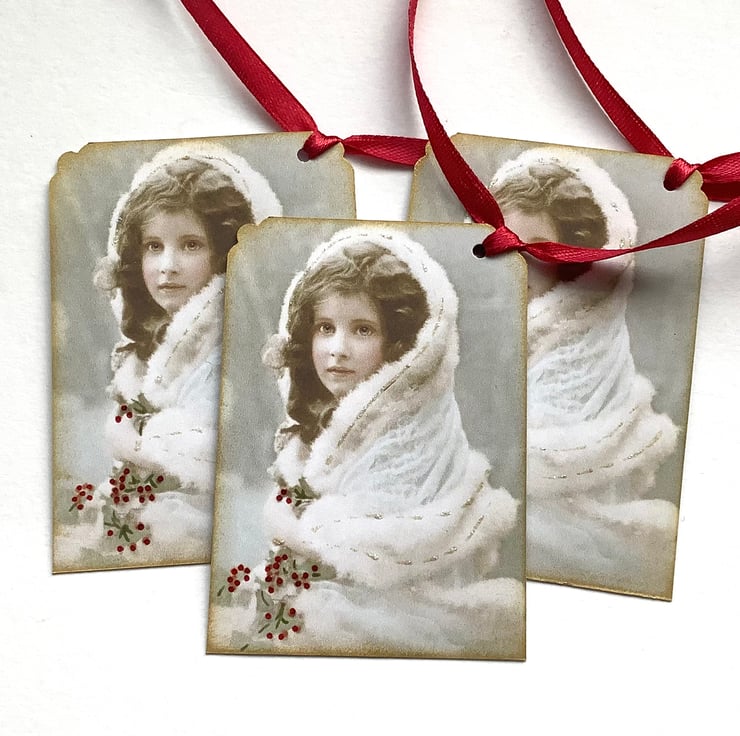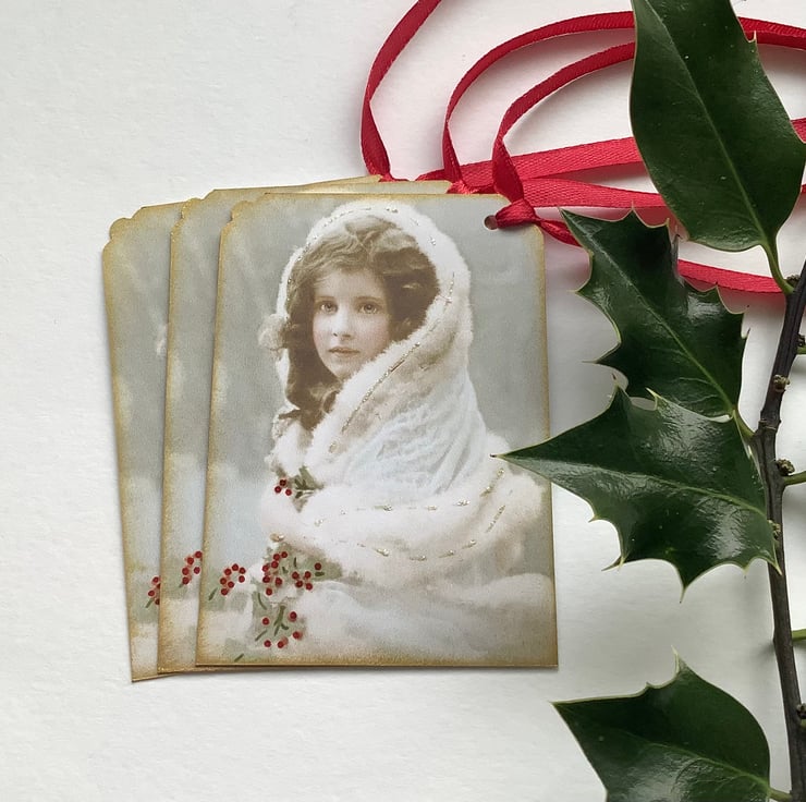 GIFT TAGS . Winter. Christmas. ( set of 3).Vintage style . ' Victorian Miss'.