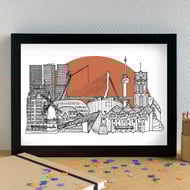 A blank card featuring a skyline illustration of some of Rotterdam's greatest landmarks.