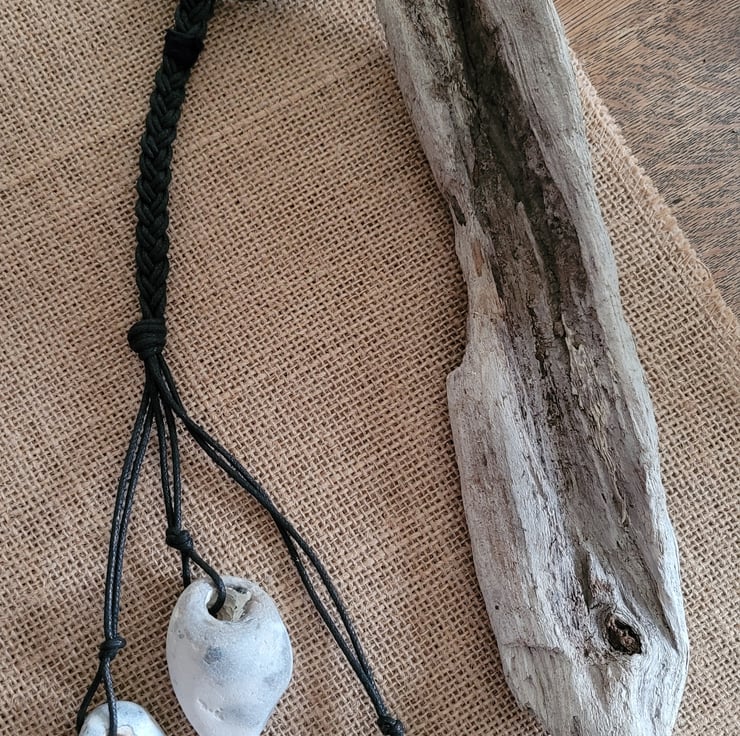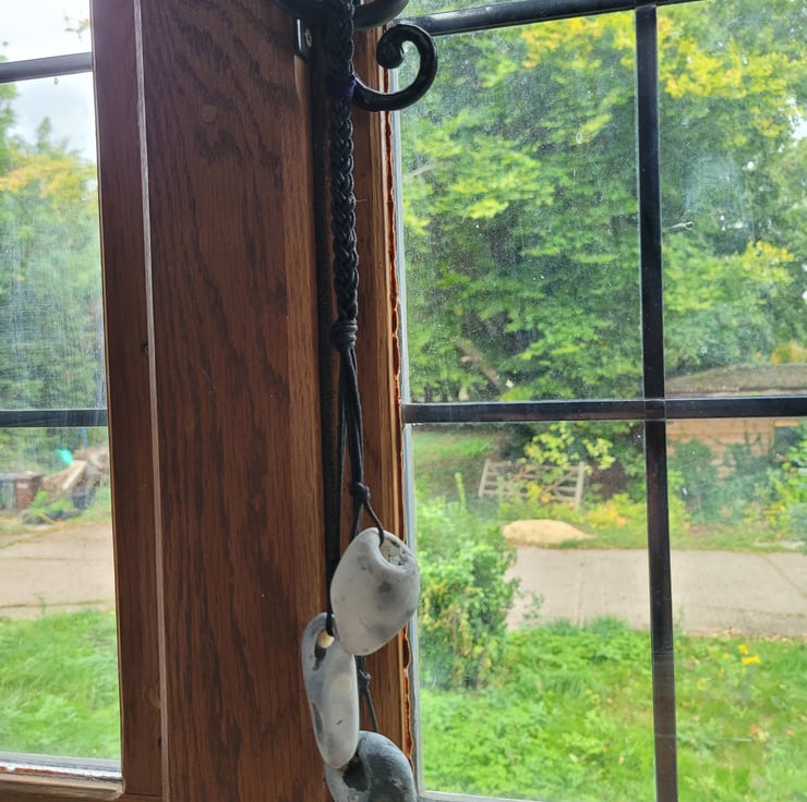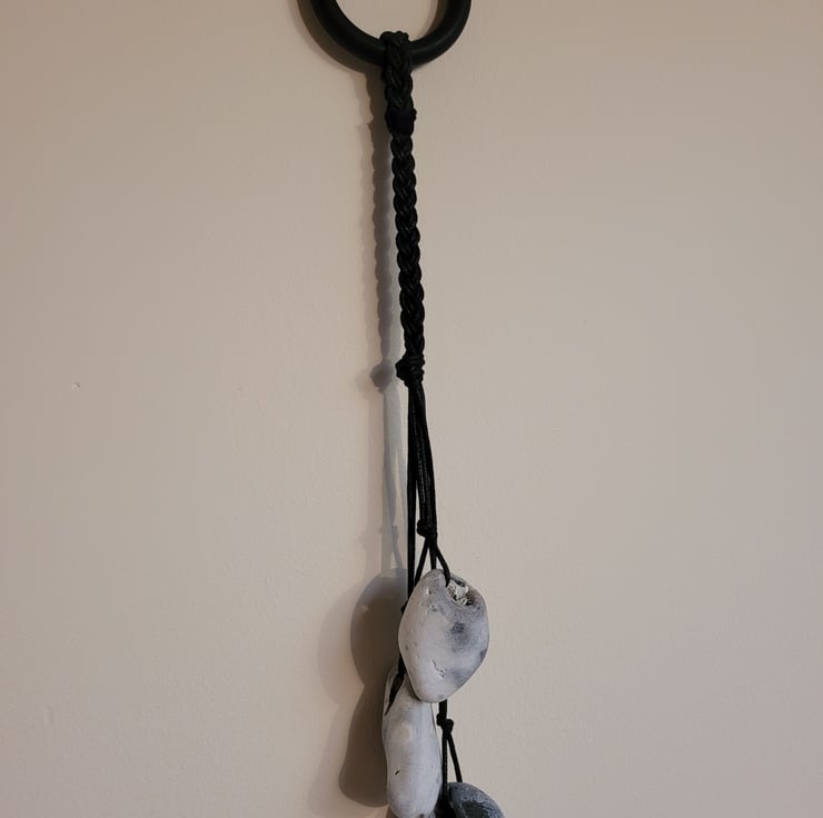 This hanging is made from stones with naturally formed holes, which were collected from the Norfolk Coast.