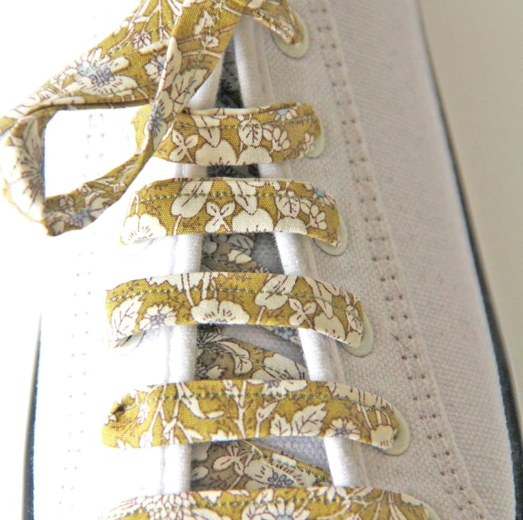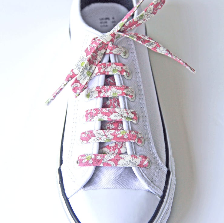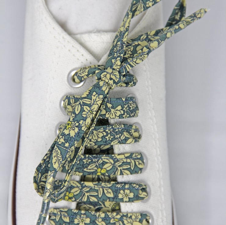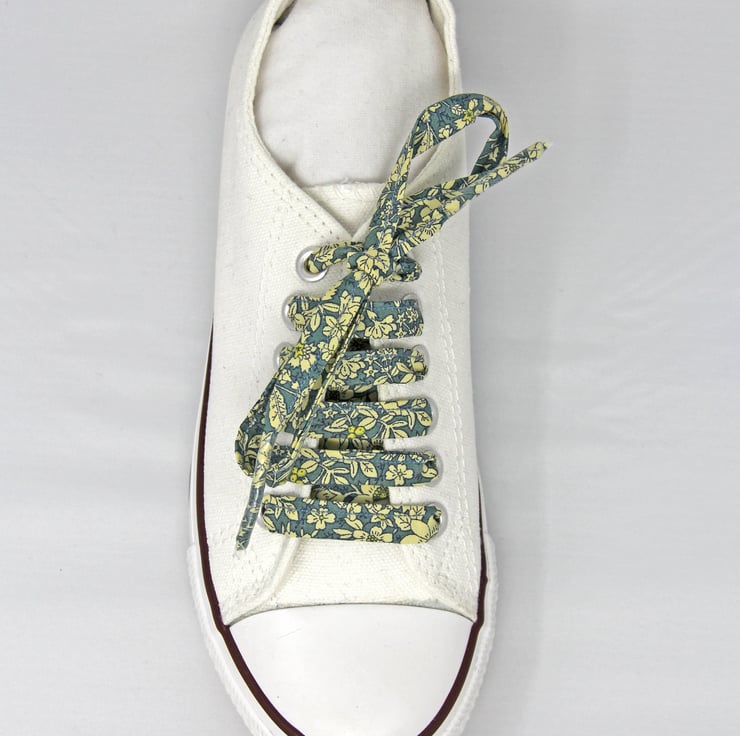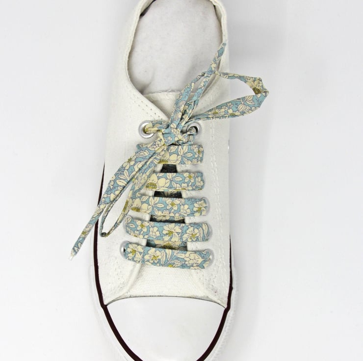 Pretty pale blue 100% cotton shoelaces to cheer up the dullest of days. Perfect for any occasion. Just pop them in like any pair of laces and enjoy! These fabric comes in a range of colours - all equally delightful.