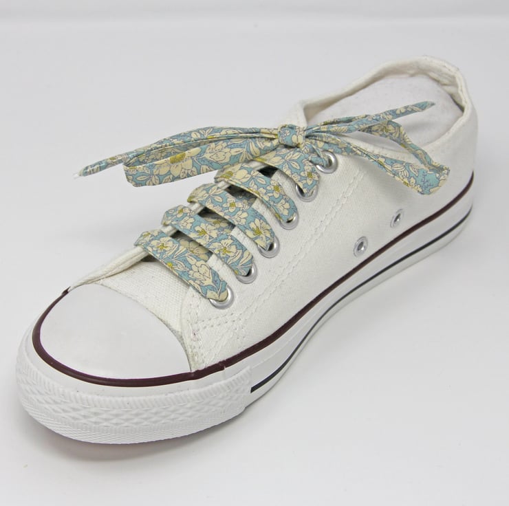 Pale Blue Floral Cotton Shoelaces. Other Colours available