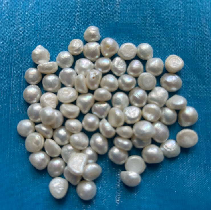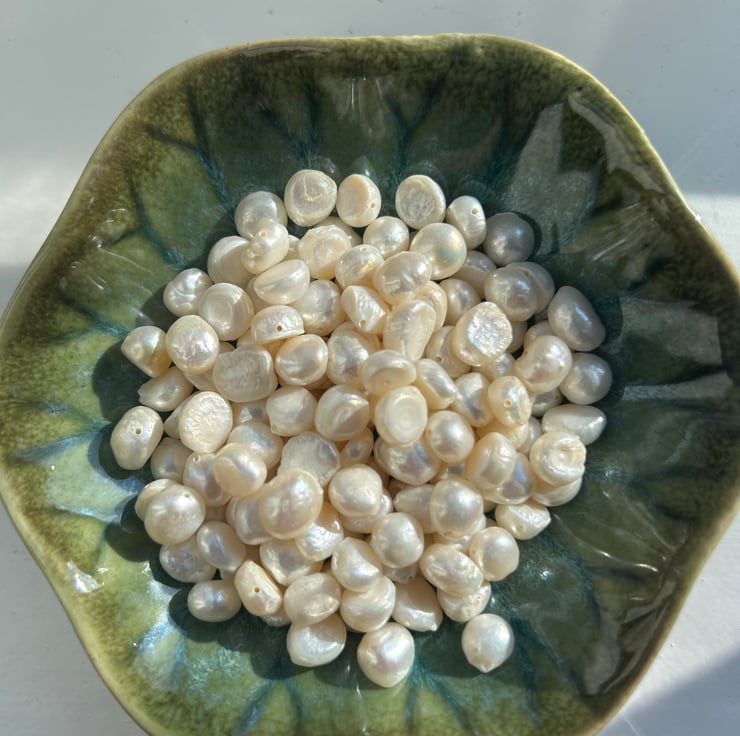 Approximately 140 pre drilled pearls, cream, baroque, 6-8mm.