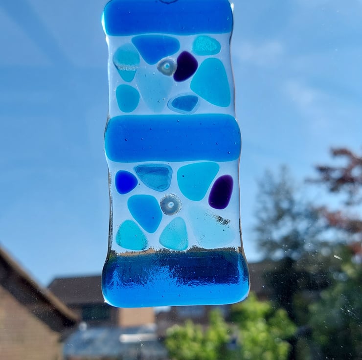 Measuring around 4cm wide by 12cm long, these unique suncatchers are available in a variety of colours and designs. The colours are permanently fused into the glass during firing, so they won't fade over time.