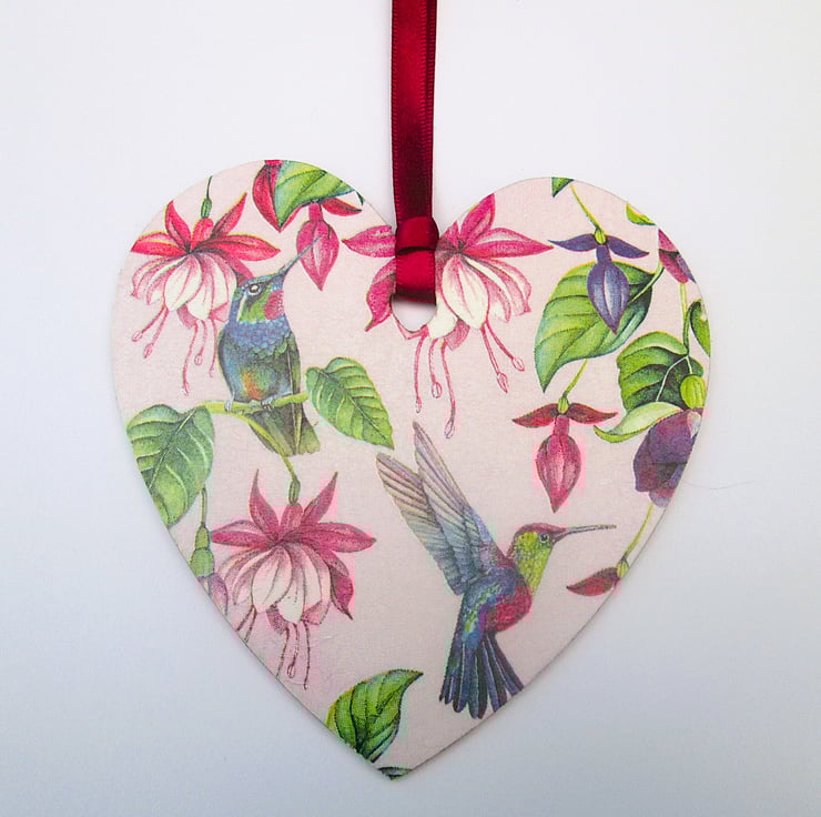 A lovely 10cm decoupage heart flat wood floral ornament is just perfect to add to your indoor decor for any season. It has matching ribbon for hanging, so it's ready to display or to gift. The reverse of the ornament is the natural wood. There maybe an odd crinkle on your ornament, but that is completely normal for anything made with decoupage.
