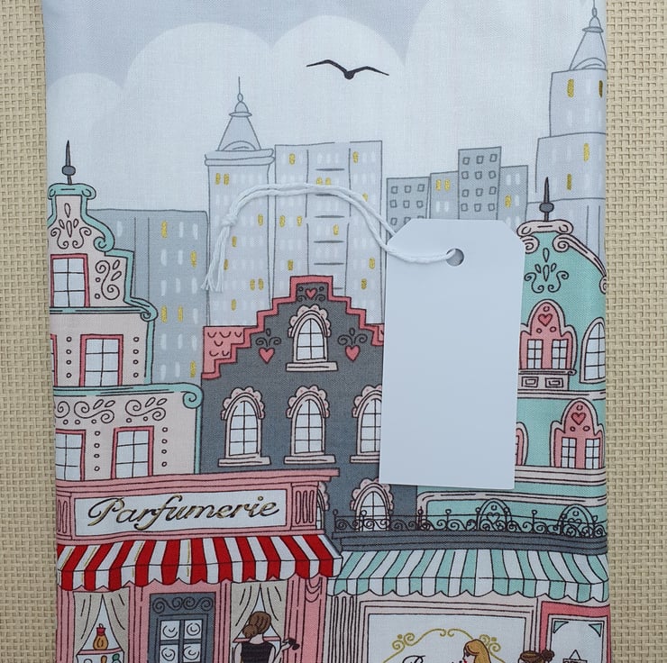 These bags fit my ideal present, a book and a bar of chocolate, but can accommodate any items up to 20cm long, 13cm wide and 5cm deep. Laid flat and empty the bag is 29cm long and 19cm wide.