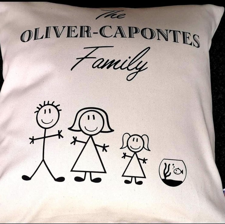 Printed with a black vinyl transfer onto a 100% cotton cushion cover with a cushion pad
