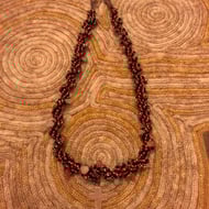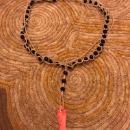 Glass bead bandweaving with 'live' printed in coloured beads, fastened by metal studs on leather. Two settings of fastenings depending on width required. Medium size