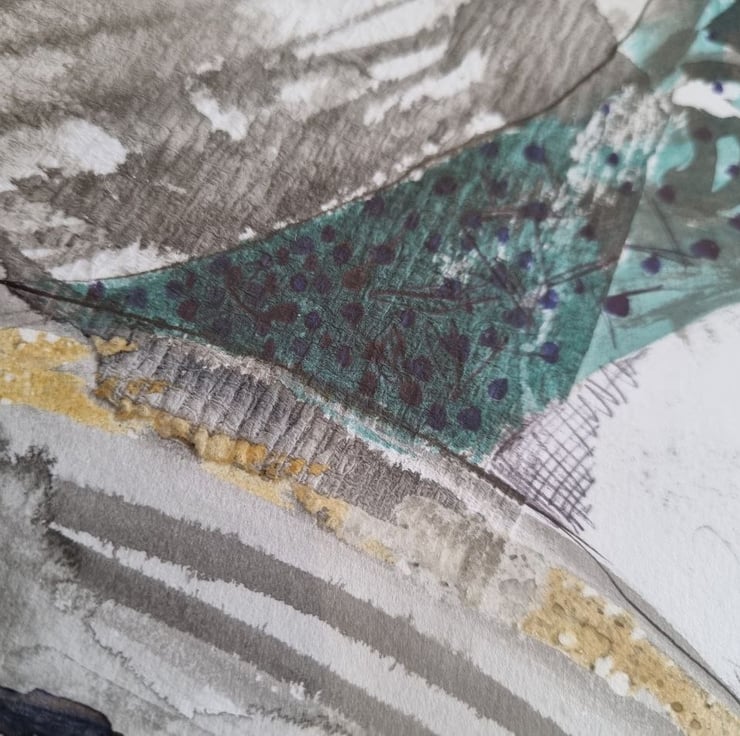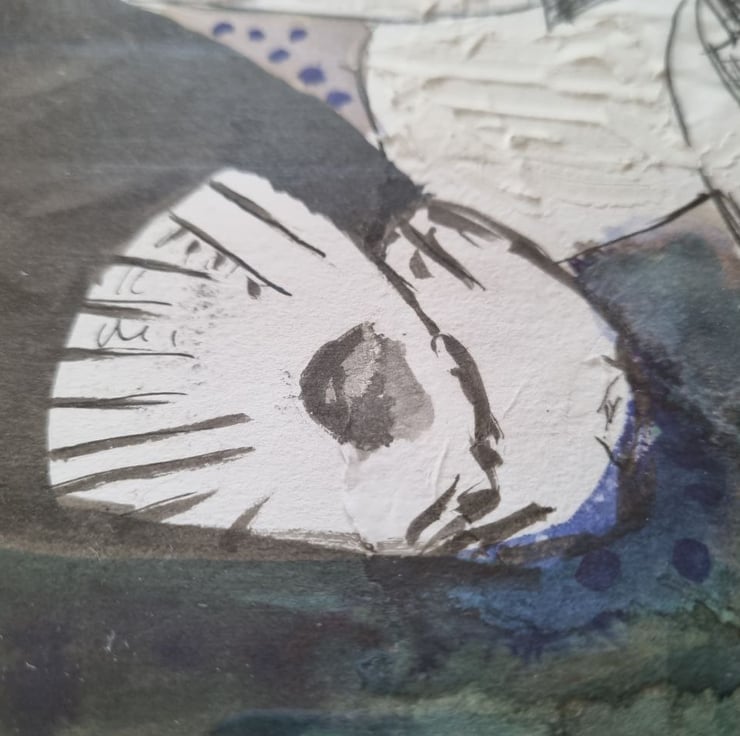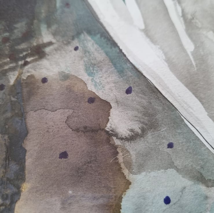 Created using a combination of paints, inks and layered textures, this piece blends elements of realism and abstraction. The palette of black, white, green, grey and deep indigo evokes a calm atmosphere. The work reflects my fascination with the delicate balance between nature’s fragility and strength. Every brushstroke is a gesture of observation — a study of form, texture and rhythm found in the smallest details of the natural world.