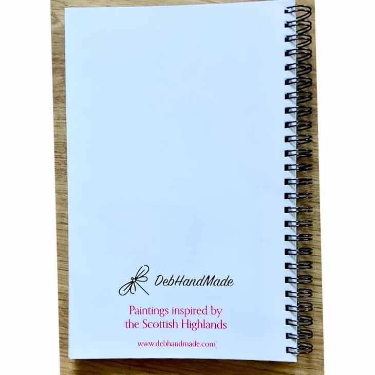 Nice quality spiral bound notebook with a reproduction of my Spring Hare pencil drawing gracing the front cover page plus the text ‘Hopes & Dreams’ and Debhandmade logo and website information on the back cover.