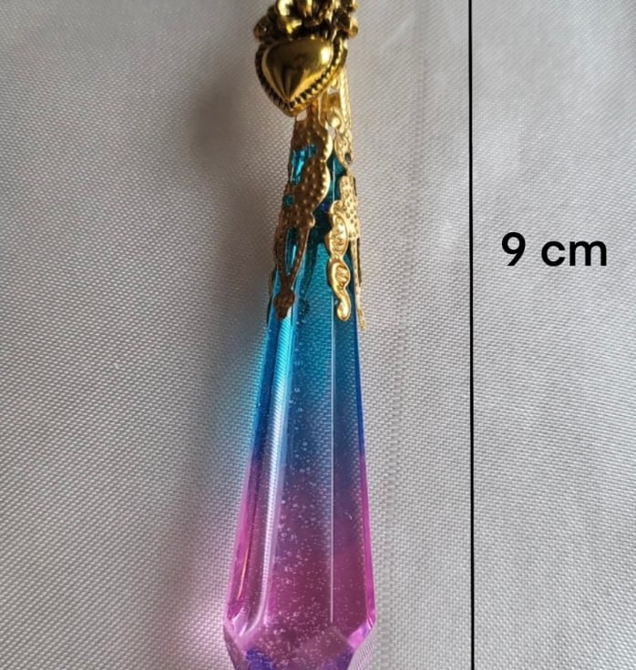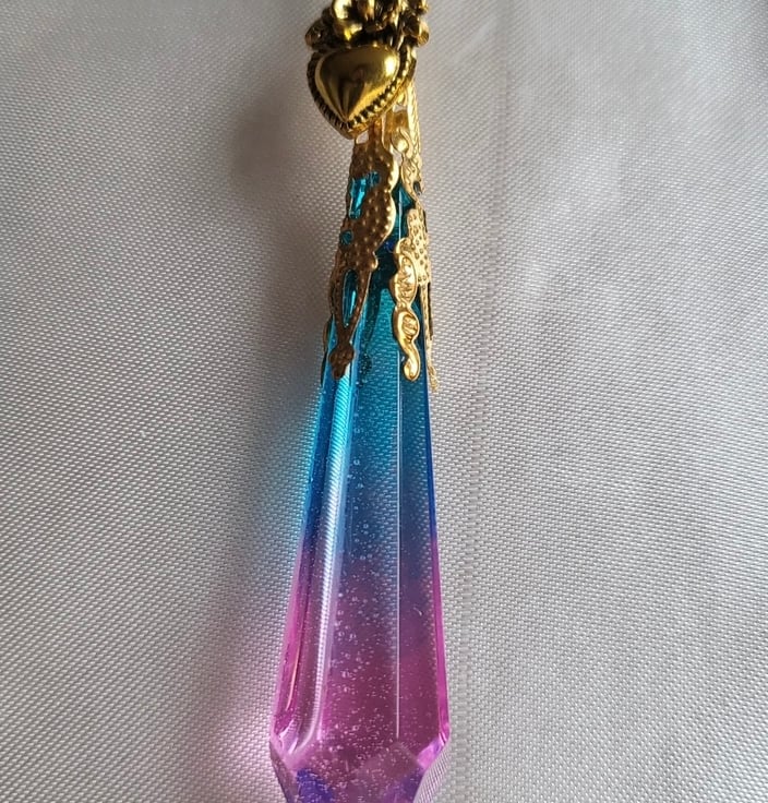This beautiful pink and blue resin necklace is a perfect gift for jewellery lovers. Its adds a pop of colour to any outfit. It looks lovely when light shines through it.