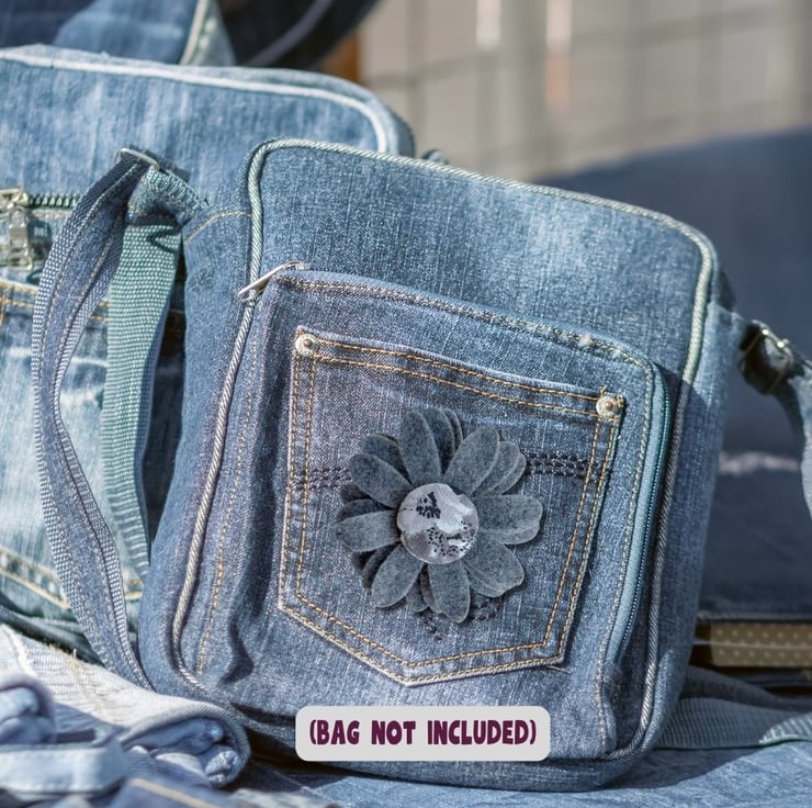 The flower measures approximately 6cm in diameter – the perfect size to brighten up a coat lapel, cardigan, scarf, or bag. At its heart sits a unique fabric-covered button, handcrafted from leftover fabrics.
