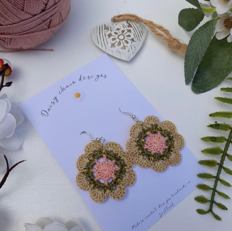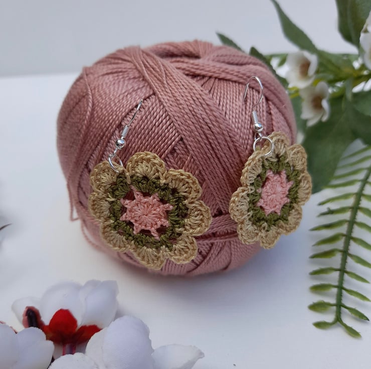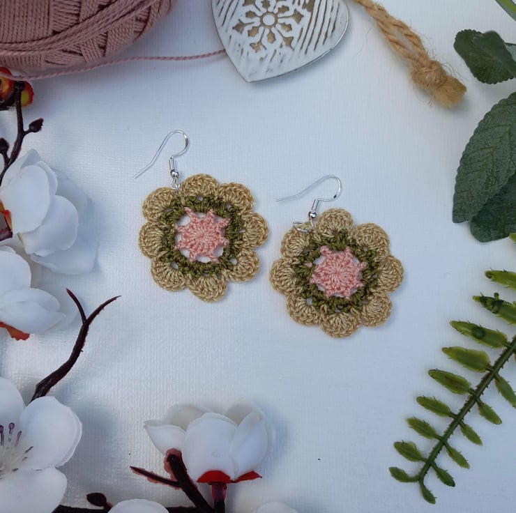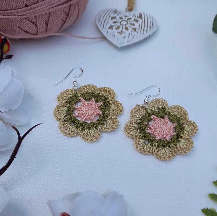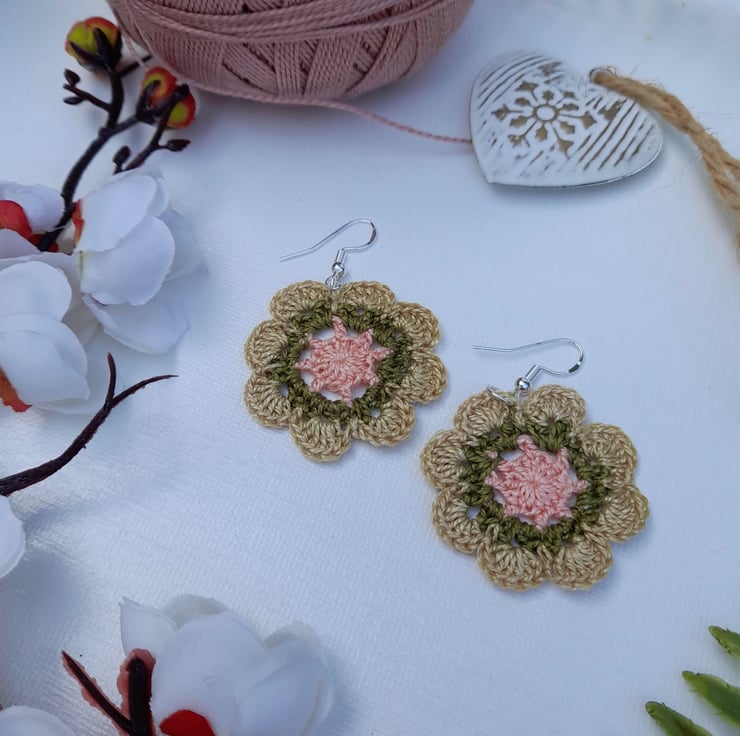Pretty crochet doilie earrings handmade from very thin crochet cotton in stunning colour design.