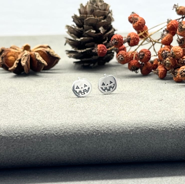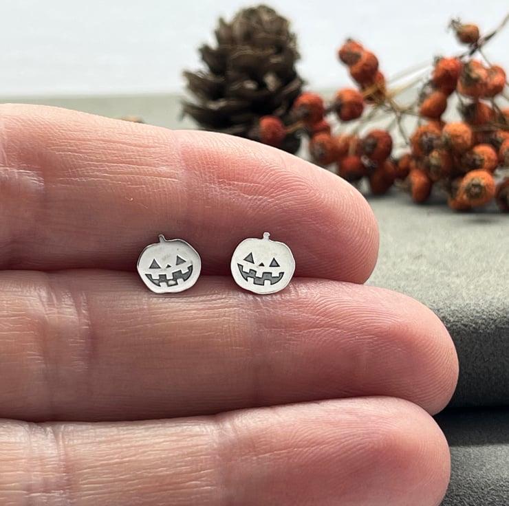 Handmade Sterling Silver Halloween Stud Earrings, Pumpkins