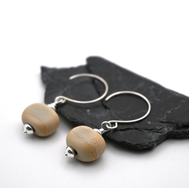 A pair of sterling silver earrings which feature handmade lampwork glass beads.