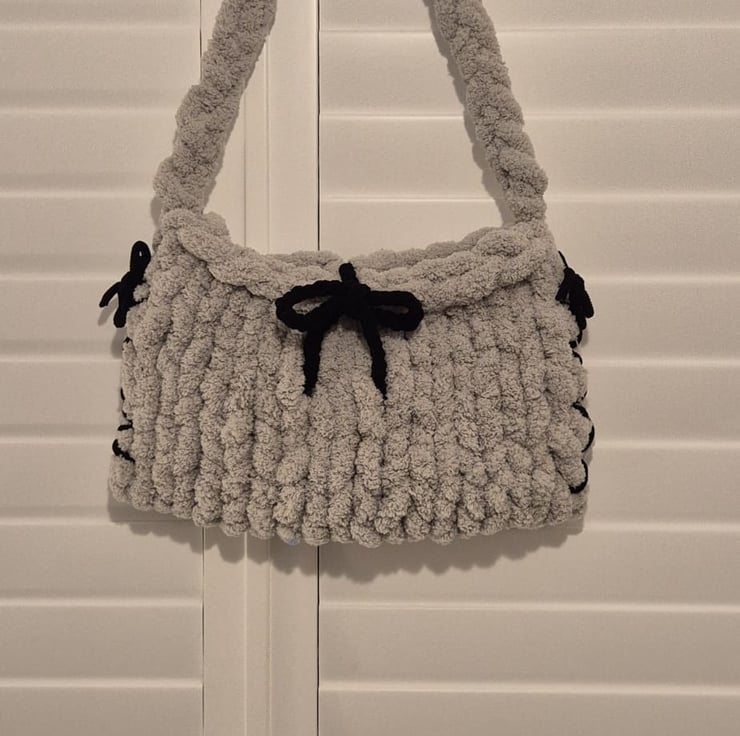 Crafted with Care this handbag is meticulously hand knitted, ensuring a soft and cozy feel.
