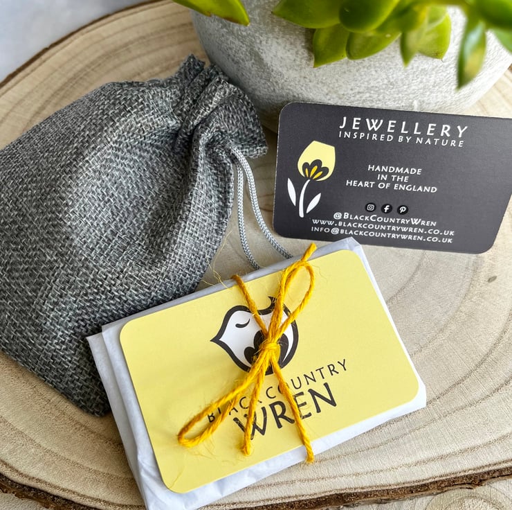 All jewellery will be carefully packaged into an eco-friendly gift box or burlap drawstring gift bag, which will include a small silver polishing cloth and care information.