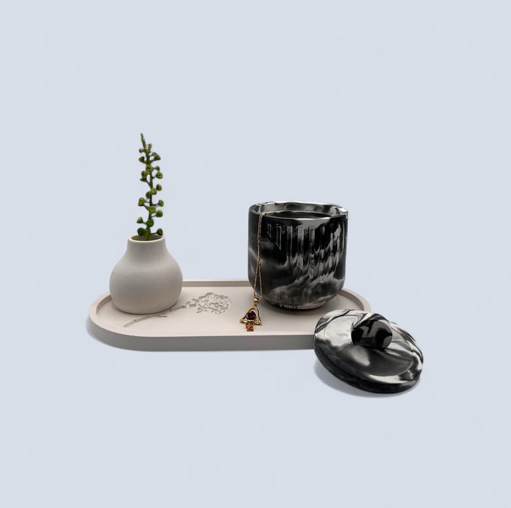 Perfect for storing jewellery, keepsakes or other small treasures, this decorative pot combines function with modern elegance. Its monochrome tones suit a wide range of interiors, from minimalist to modern, making it a thoughtful handmade gift or a stylish treat for yourself.