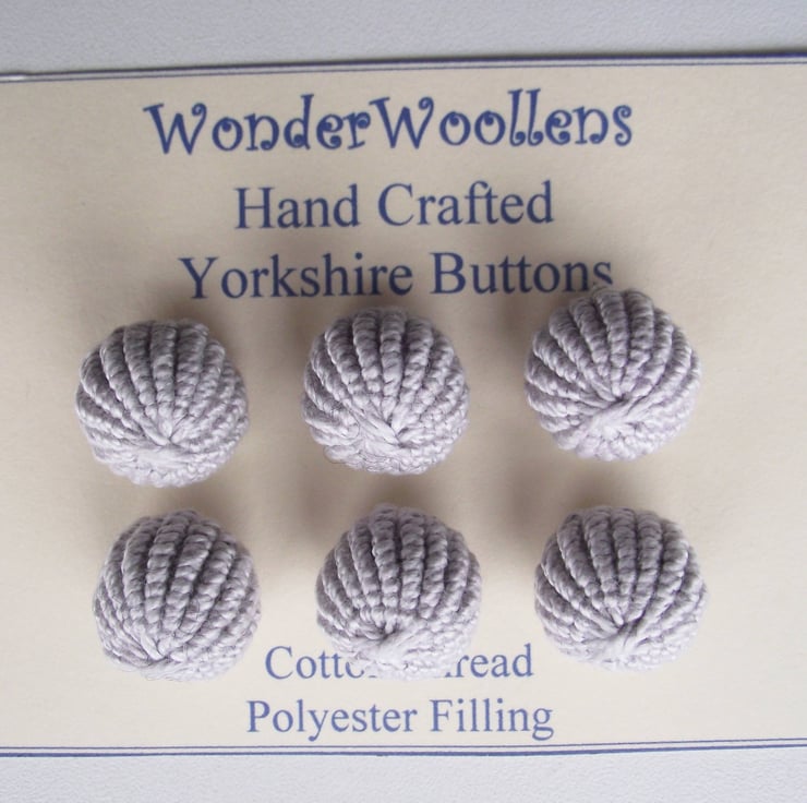 Yorkshire Buttons, Embellishments, Cotton Thread, Set of Six, Light Grey