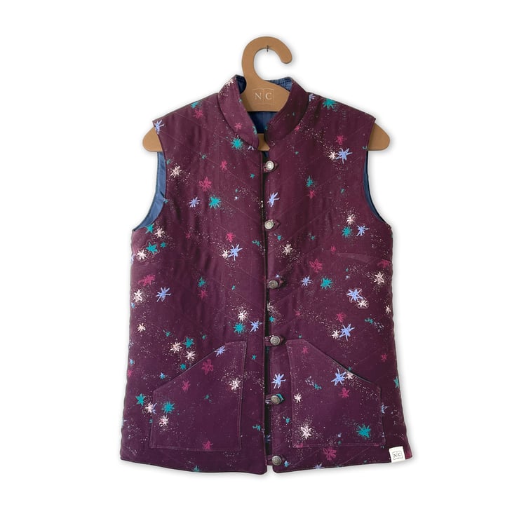 Handmade Quilted Vest - ‘Star Gazers’ Upcycled - Size Small (UK 8-10)