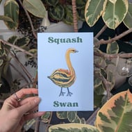 Inspired by oddly shaped vegetables, the 'squash bird' print series celebrates all things quirky. All designs were originally hand-painted in gouache, before being incorporated into a digital design with text.