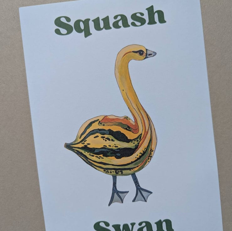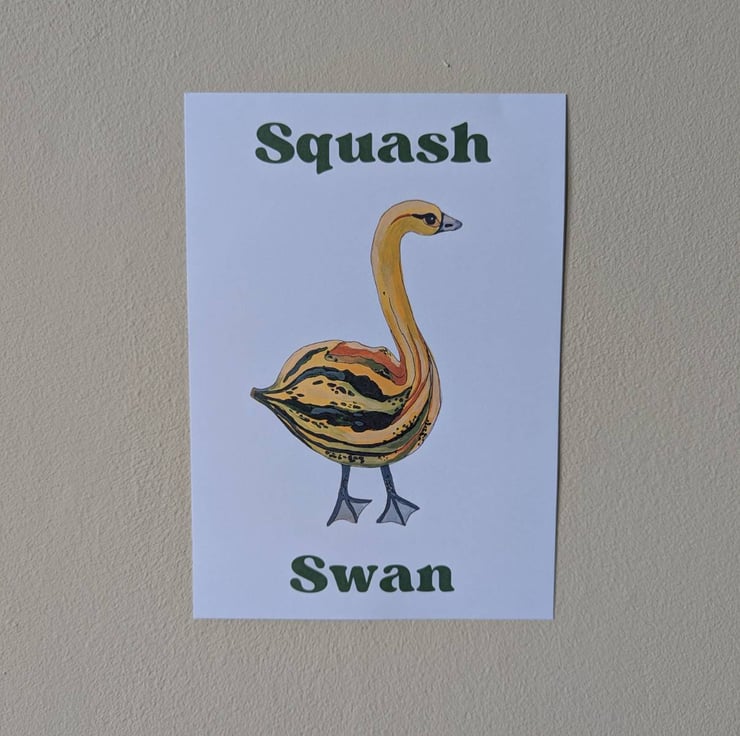 Bring some fun to your space with a high quality digital inkjet print. This colourful print would make a fabulous fun gift for someone special in your life, a squash or swan lover! Or as a little treat for your own home.