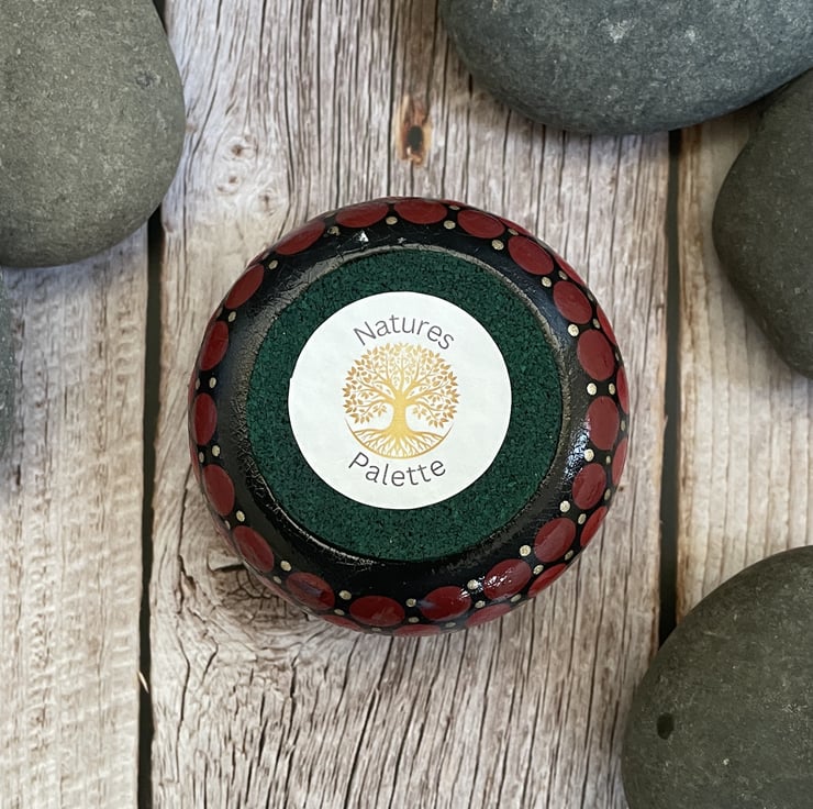 This Mandala stone has been hand painted by myself under the artist name of Natures Palette.