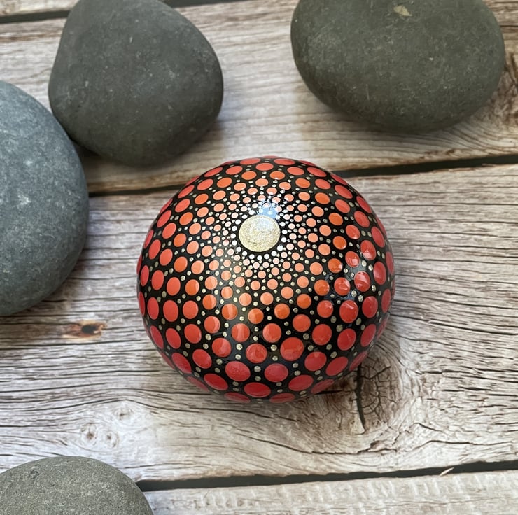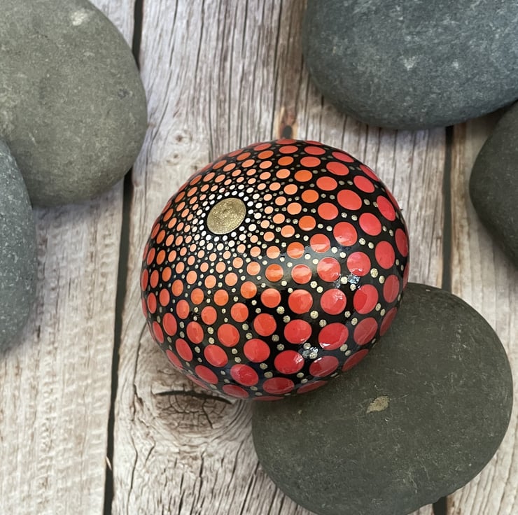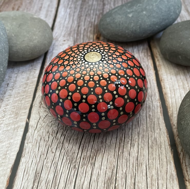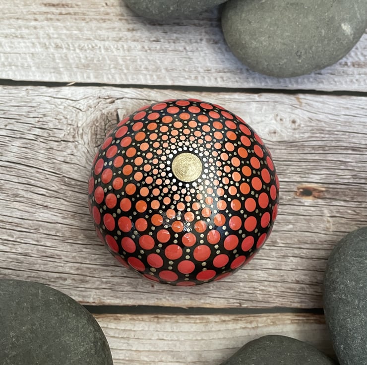 Red Mandala Painted Rock Art Stone Acrylic Art Painting Hand Painted Unique P1