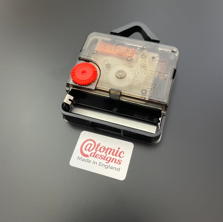 Installation instructions: Please ensure the wall where the clock is to be mounted is suitable. Drill a 7mm hole using a power drill. For brick and cement block walls you will need a masonry bit. Drill the hole at least 5cm into the wall. Push the supplied rawlplug (plastic wall plug) into the hole. You may need to use a hammer to lightly tap it into place. The plug should sit flush with the wall. Using a cross head screwdriver, screw the supplied screw into the rawlplug, leaving no more than 5mm protruding. Check with your hand that the screw is secure. If so, then mount the clock by lining up the screw with the screw hole/hanger on the clock mechanism. Adjust to ensure it is aligned correctly and secure. Requires AA battery (not included). If unsure on how to install this item, hire the services of a professional. Product information: Atomic Design Studio Wall Clock, 2 years warranty in EU and Northern Ireland as per Directive 1999/44/EC Care instructions: Clean with damp cloth, do not use abrasive type cleaning products. Safety notice: Please ensure the item is fitted correctly as per the supplied instructions. Failure to do so may result in the item falling off the wall and getting damaged or causing injury to someone. We (Atomic Design Studio) are not held responsible for any damage or injury caused by failing to follow the installation instructions or using installation materials other than those supplied.