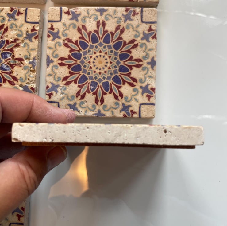 Boho Moroccan Marble Coasters – Handmade Tumbled Stone Rustic Coasters Set of 4