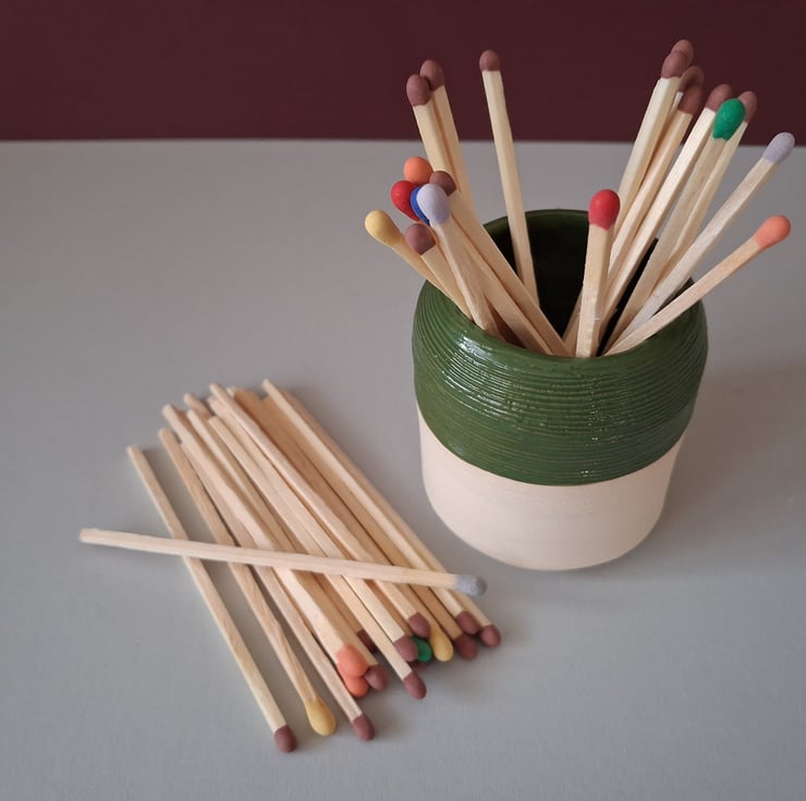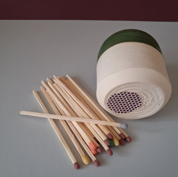 I am but a pottery baby, having only started out making different pottery items since Feb 2025. As a charity worker (day job!) and very conscious of making sure every pound counts - I wanted to make my pottery a little bit quirky - as no one pot looks the same as the other - but importantly both practical and affordable. This Match stick holder would look great in any home and used on a regular basis from lighting your fire to your candles! Great as a gift!