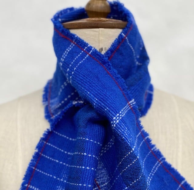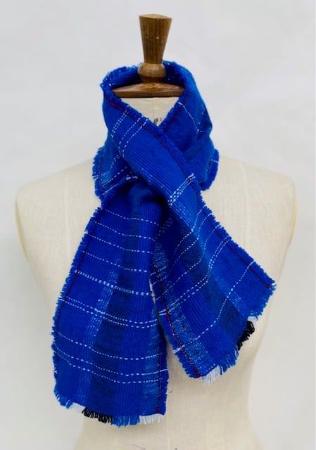 Brilliant Blues Shorty Scarf, hand woven in merino wool