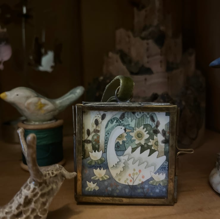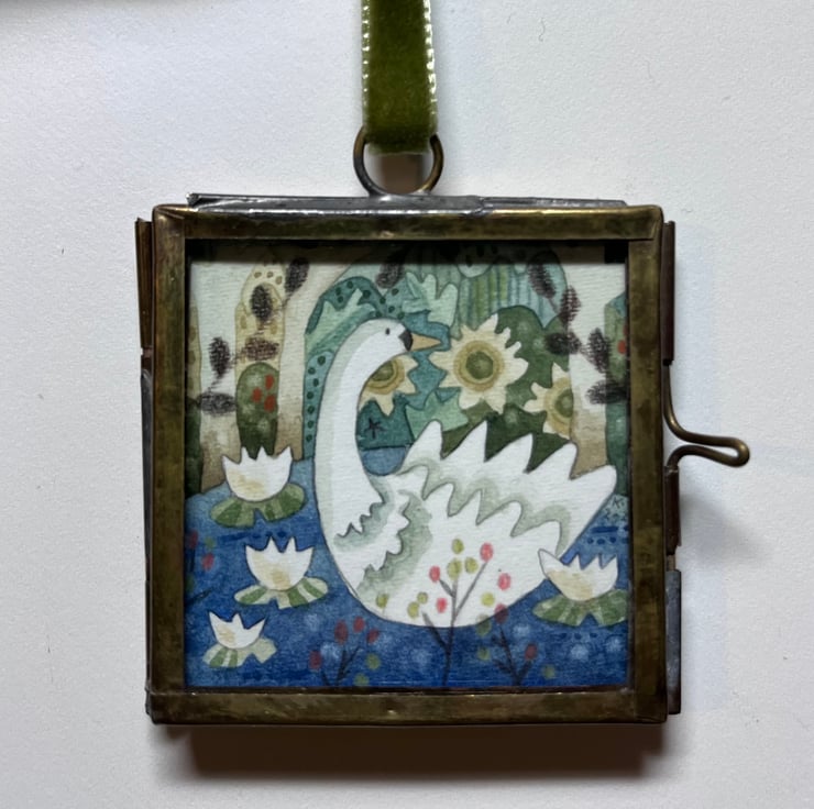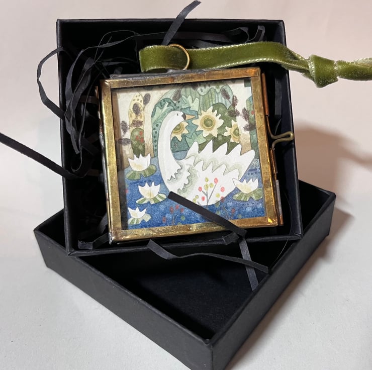 An original little painting in a glass and antique brass frame. Approximately 5cm square. Comes gift boxed. Perfect for a special gift.